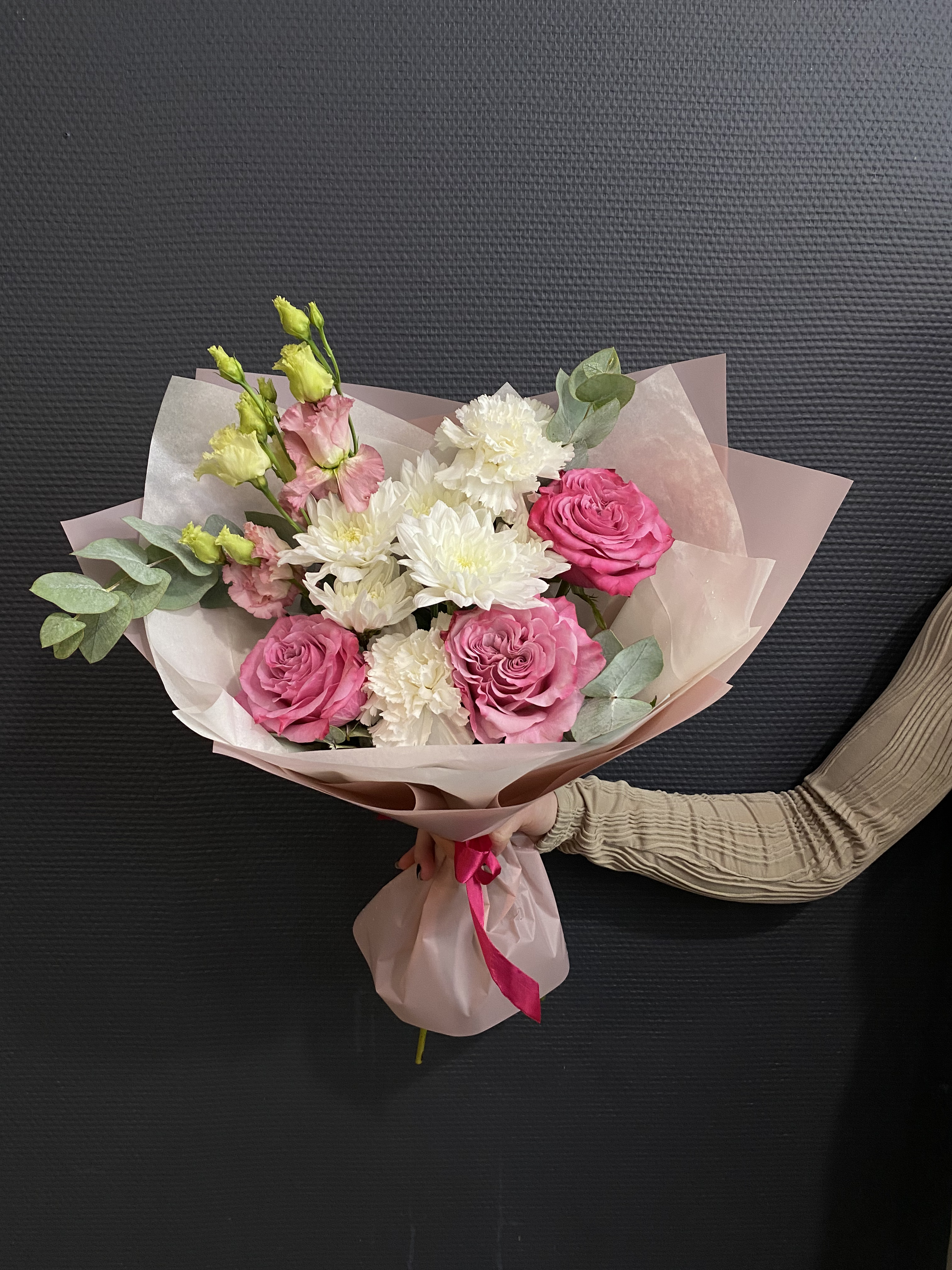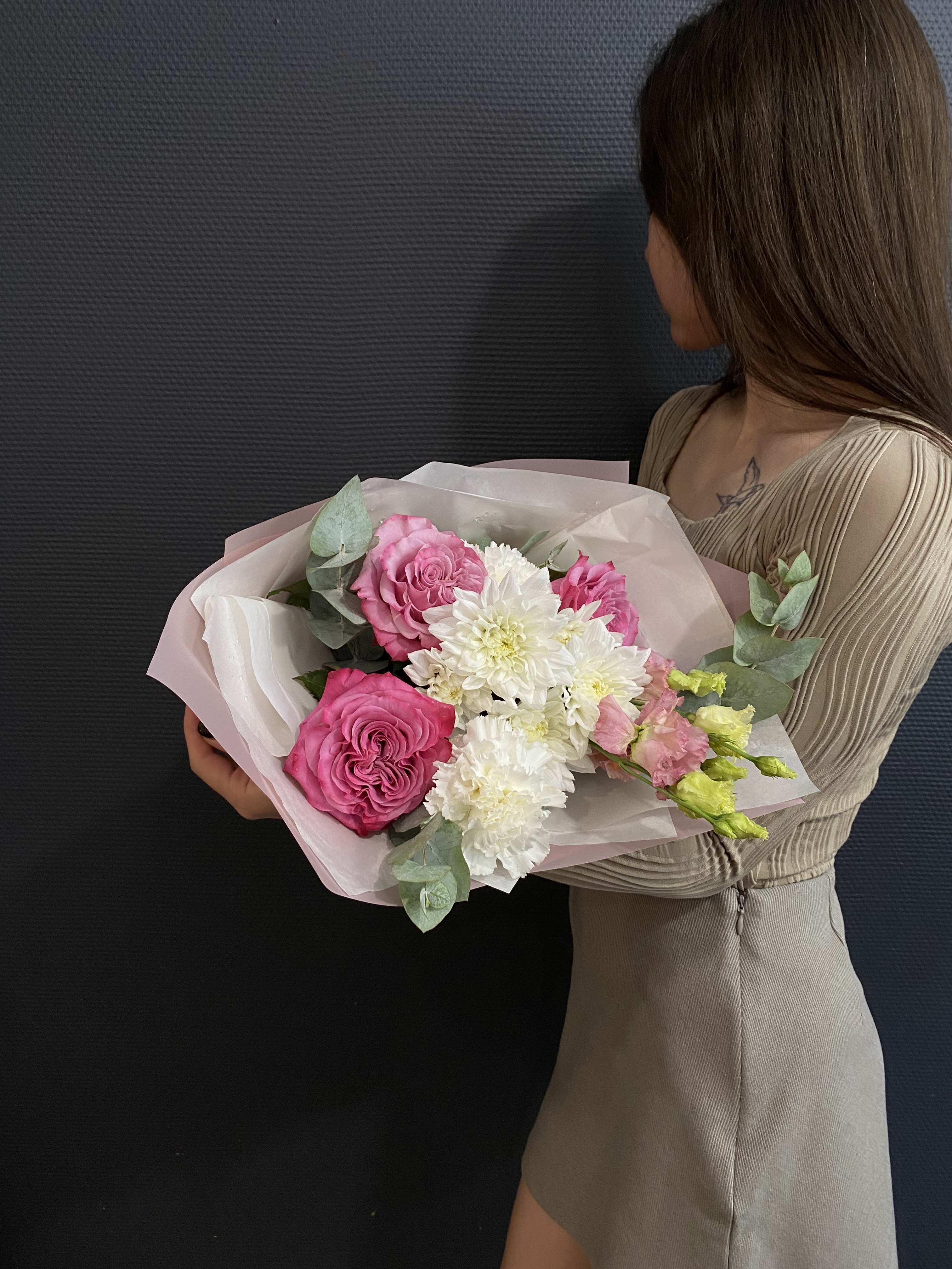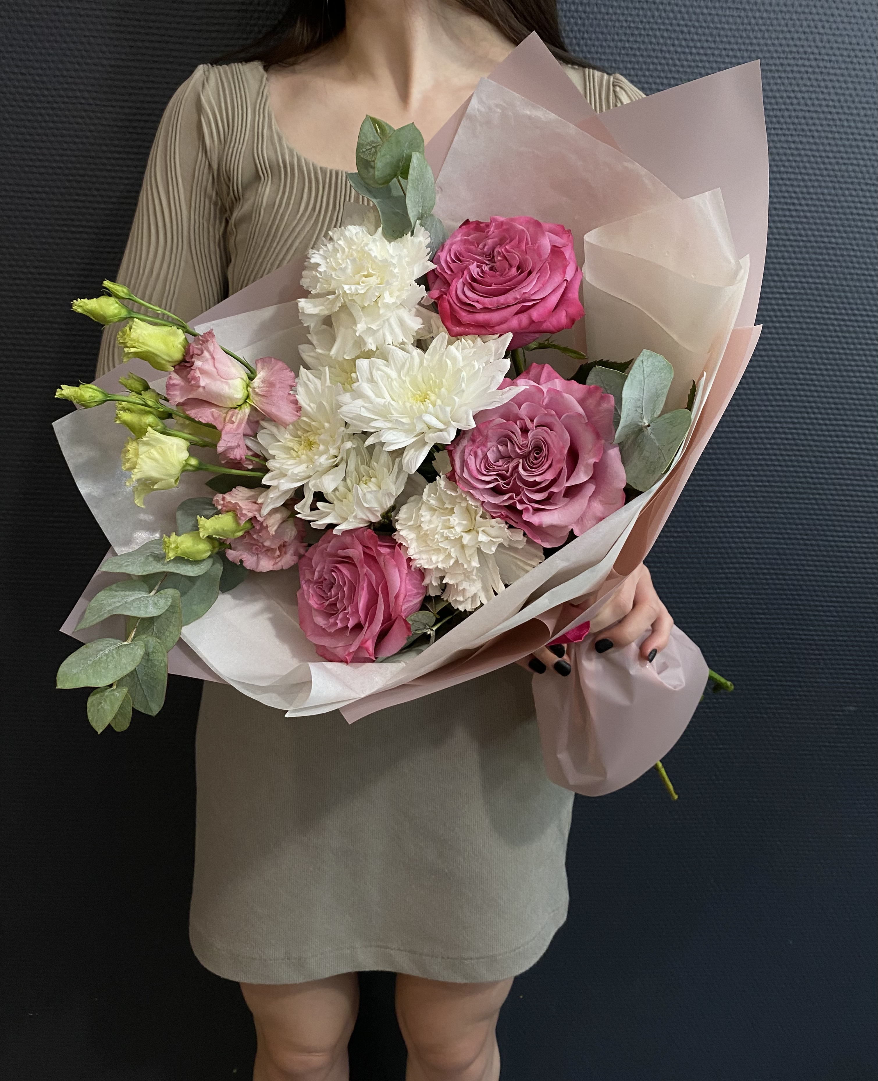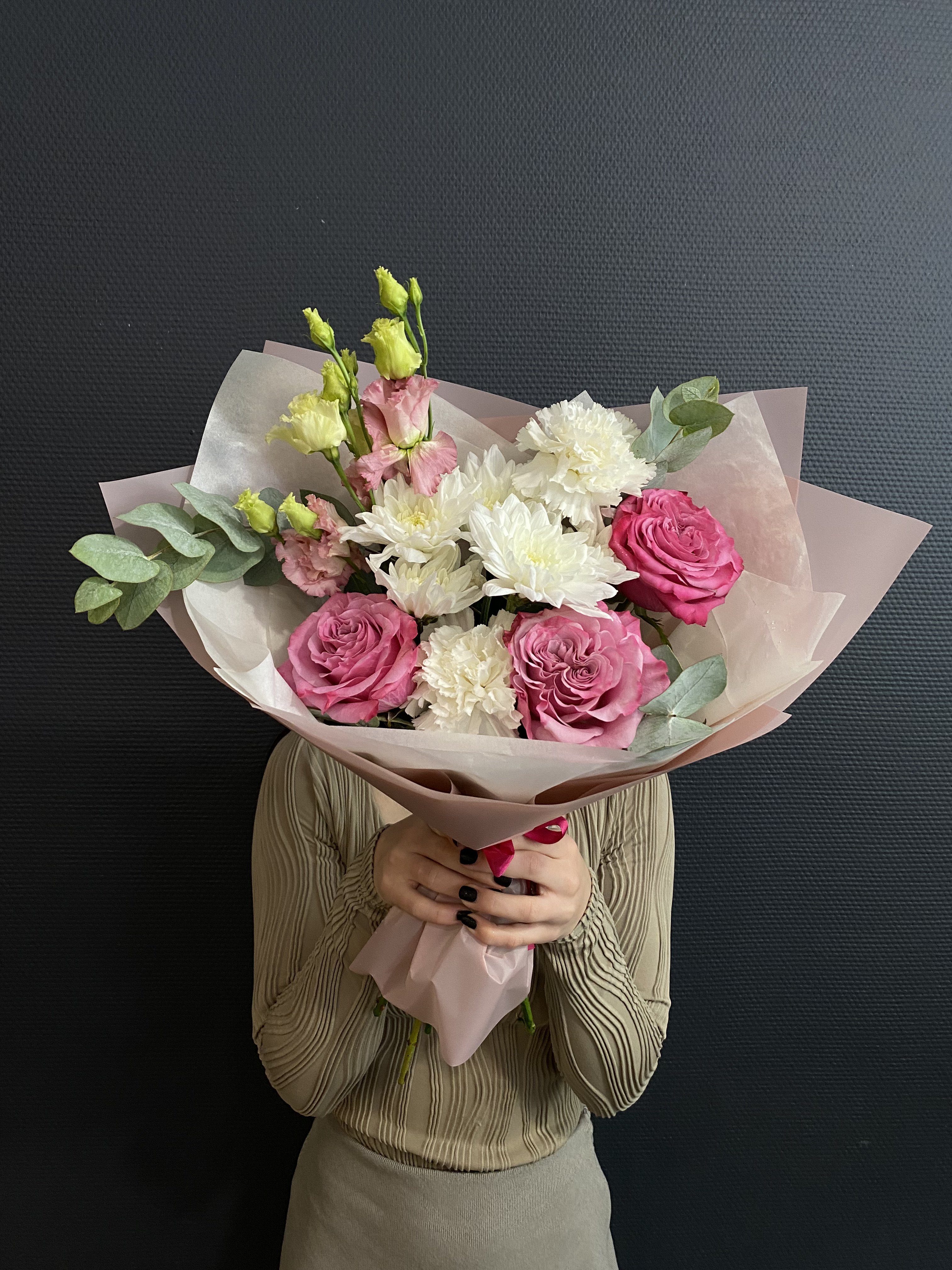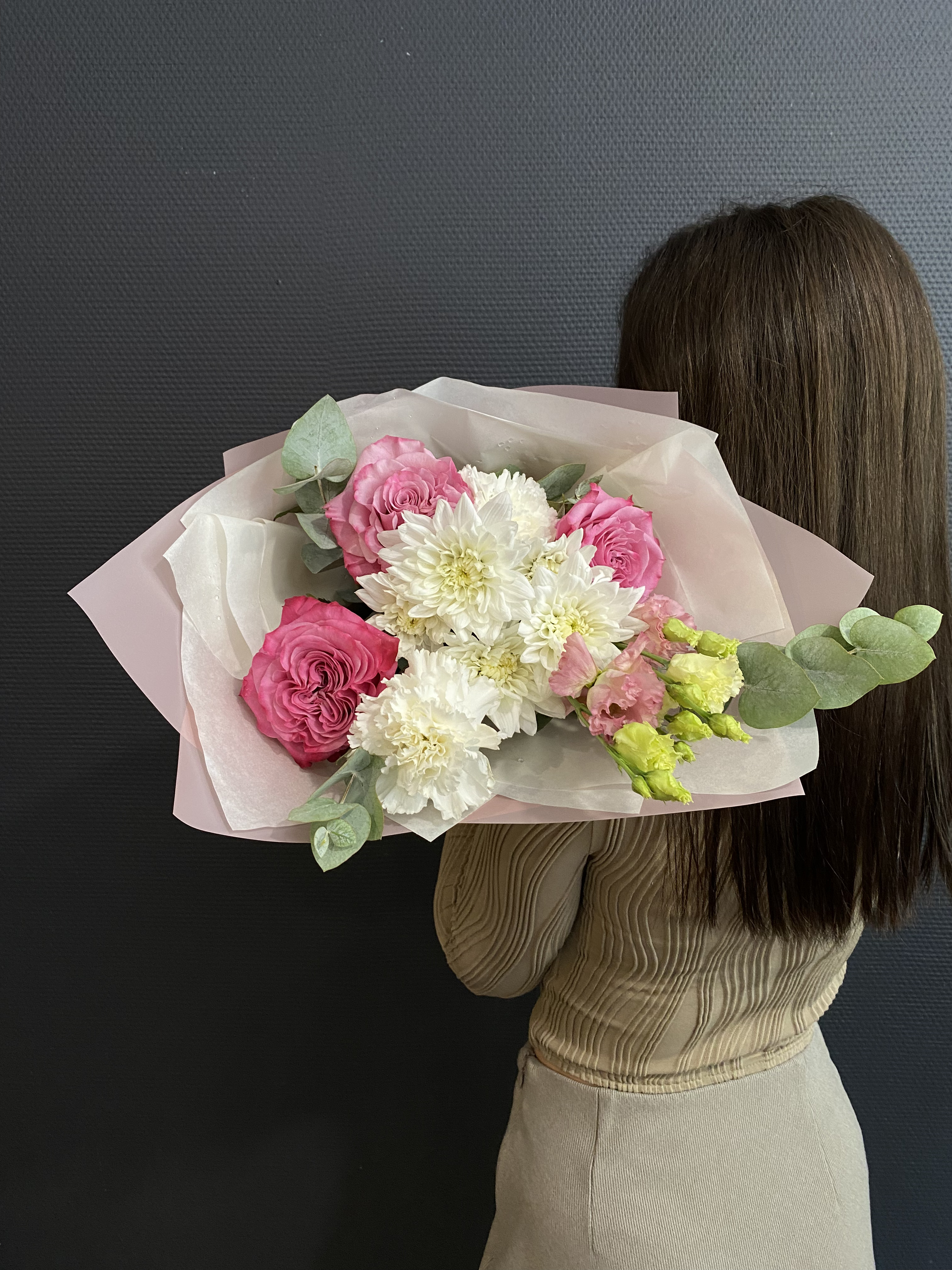 Погрузитесь в мир утонченной красоты с букетом "Навстречу мечте", где каждый цветок – это шаг к заветным мечтаниям. Этот букет – симфония нежности, в которой белоснежные хризантемы символизируют чистоту и верность, а розы Country Blues окрашивают мелодию в оттенки глубокого вдохновения. Эустомы, словно нежные облака, добавляют композиции воздушности, а эвкалипт нежно шепчет о свежести и новых начинаниях. Диантусы, как маленькие звезды, мерцают среди зелени, напоминая о том, что мечты сбываются.