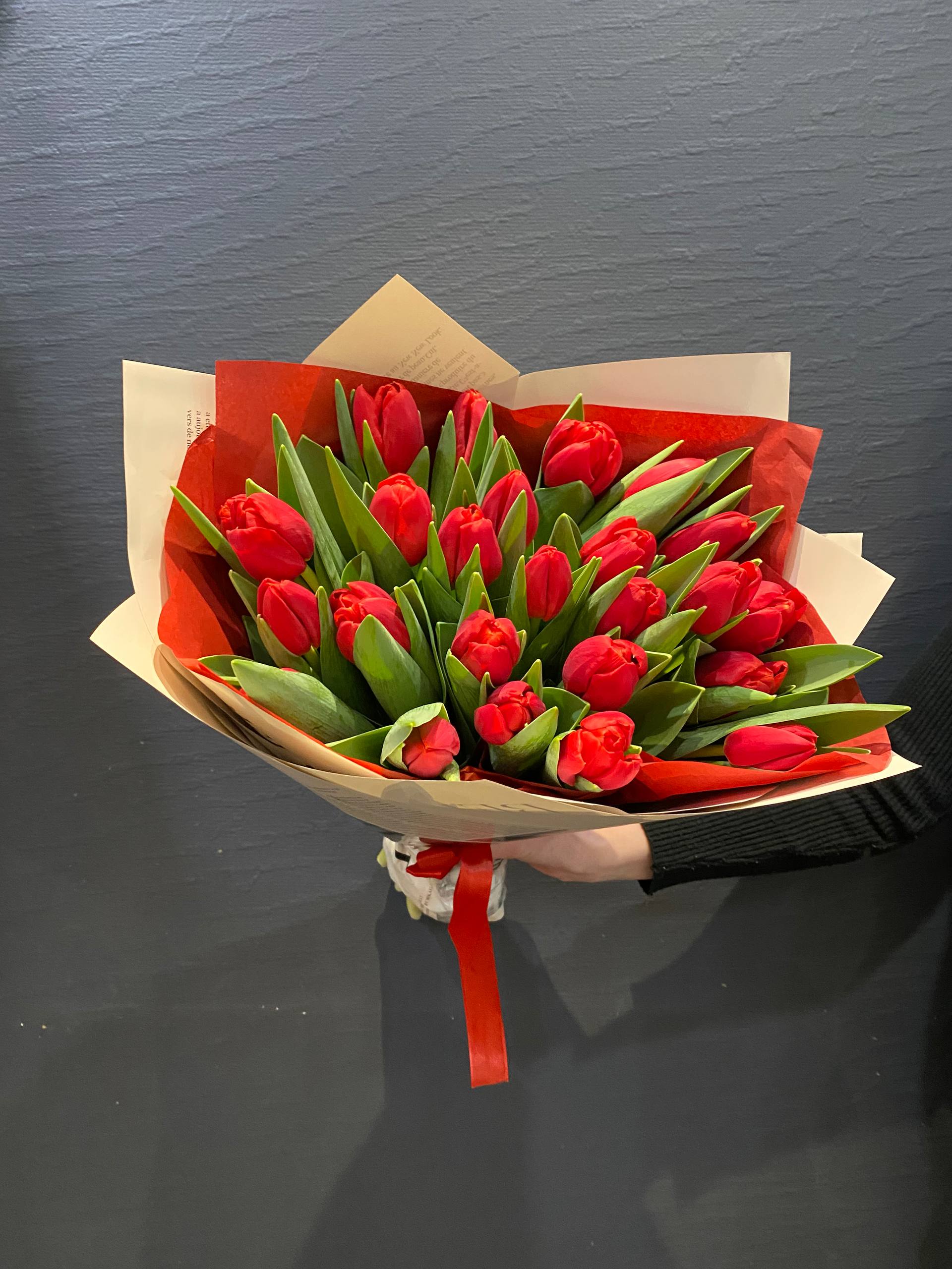 "Букет из 25 красных тюльпанов" – это не просто подарок, это знак внимания, который останется в памяти навсегда, как вечный огонь в сердце получателя. Это букет для тех, кто хочет сказать больше, чем слова могут выразить