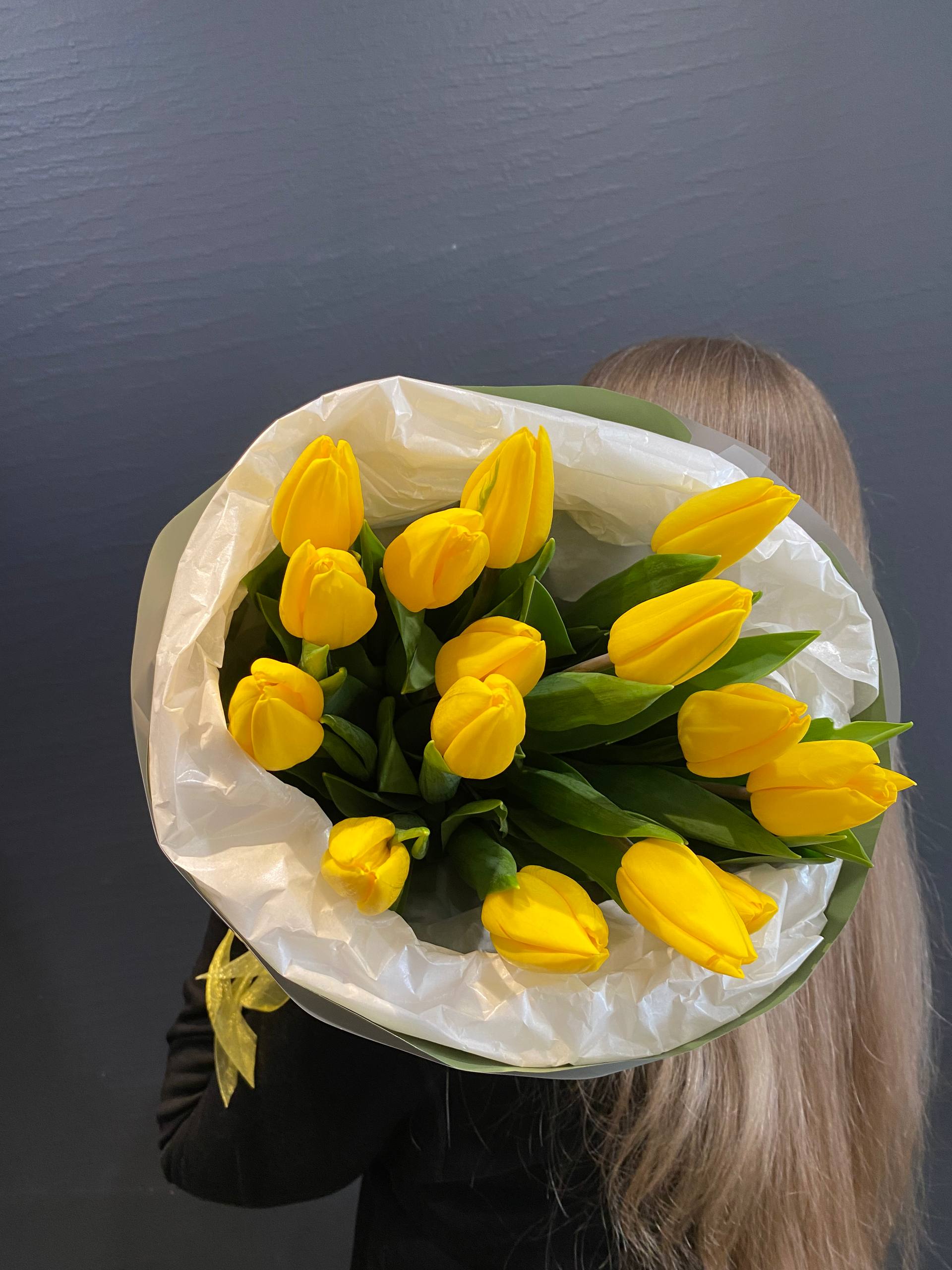 Представьте себе первые теплые лучи утреннего солнца, ласково скользящие по золотистым лепесткам, и вы поймете всю суть нашего букета "Капли весны". Это не просто 15 желтых тюльпанов сорта Стронг Голд – это воплощение весеннего оптимизма и радости.