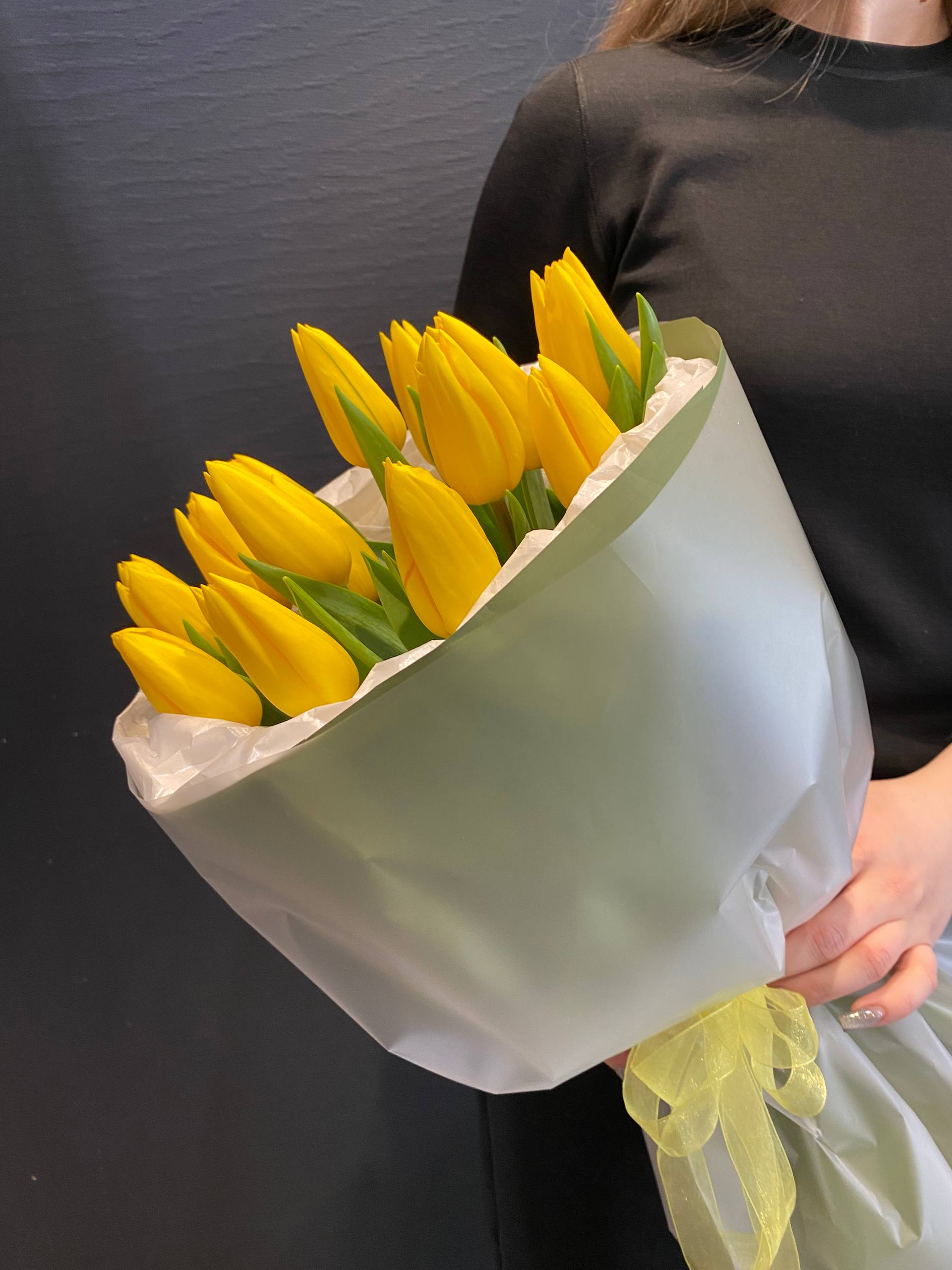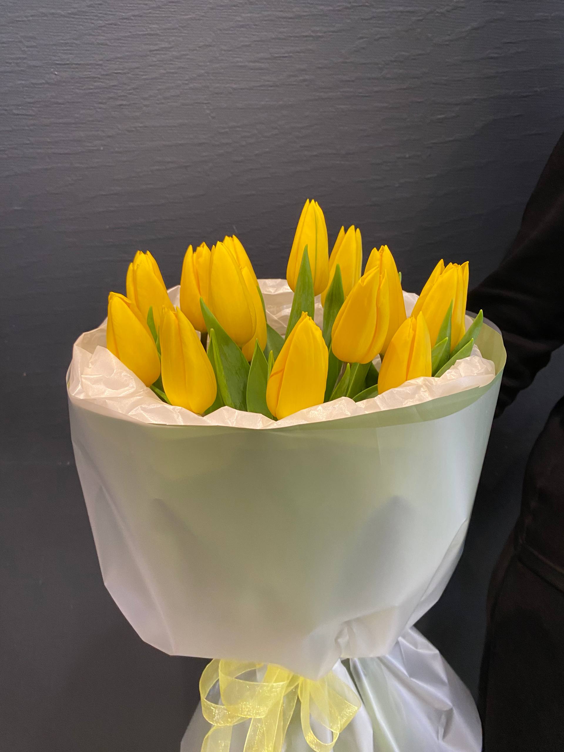 Каждый тюльпан в этом букете – как капля солнечного света, застывшая на мгновение, чтобы подарить вам частичку весеннего тепла. Желтый цвет лепестков символизирует дружбу и новые начинания, делая этот букет идеальным подарком для тех, кто стоит на пороге важных перемен или начинает новый этап в жизни.
