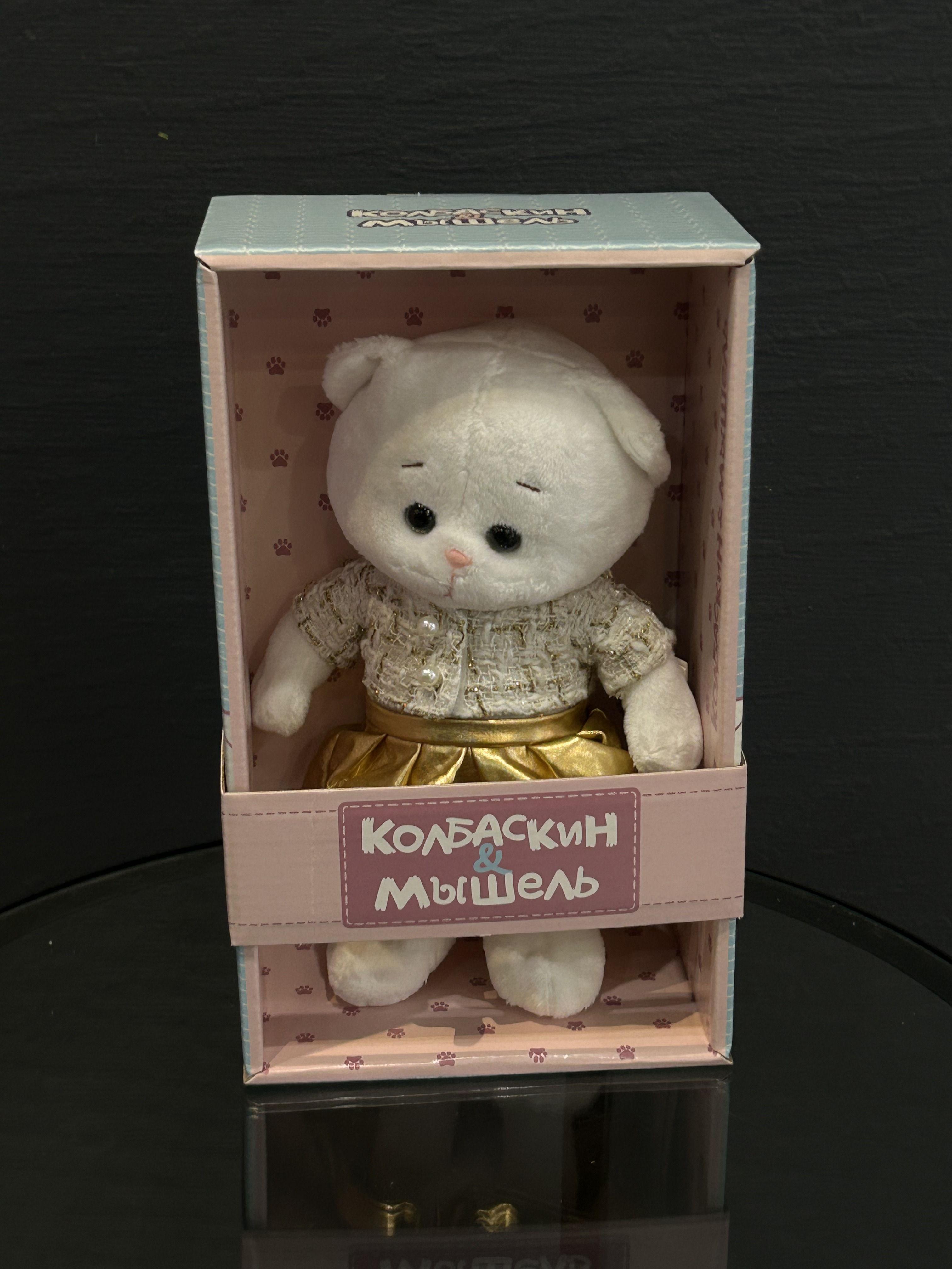 Встречайте неповторимую Мышель – не просто мягкую игрушку, а настоящую модницу в сверкающем золотом наряде! Эта очаровательная кошечка, одетая в блестящий жакет и изящную юбочку, готова стать звездой любой игровой комнаты. Мышель – это не просто плюшевый друг, это символ стиля и изысканности, который призван вдохновлять на творчество и мечты.